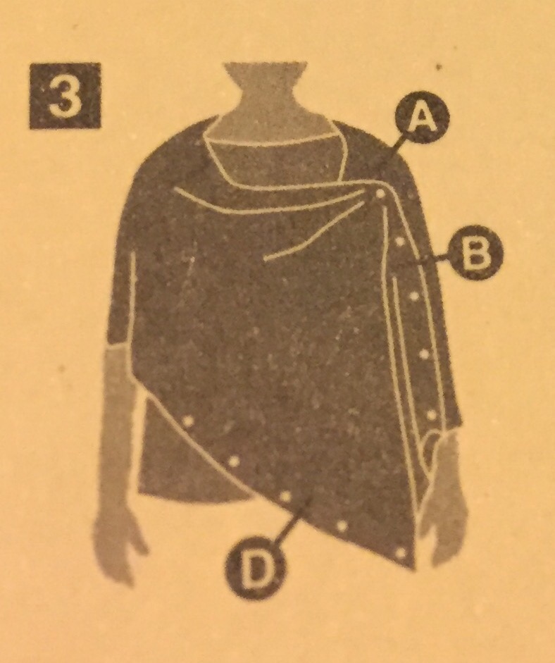 Alle mie Amiche di Maglia voglio dedicare un possibile poncho. È un capo davvero molto semplice. L’ho comprato in uno store giapponese del centro (su suggerimento di Francesca C., collega di lavoro da pochissimo, ma spero amica a lungo), quello che vende tutto il basic possibile. E l’ho comprato per replicarlo certo, ma anche perché insieme a questo possibile poncho ci sono anche le istruzioni per indossarlo (il numero 3 è il mio preferito, per questo mi ostino a definirlo poncho!):